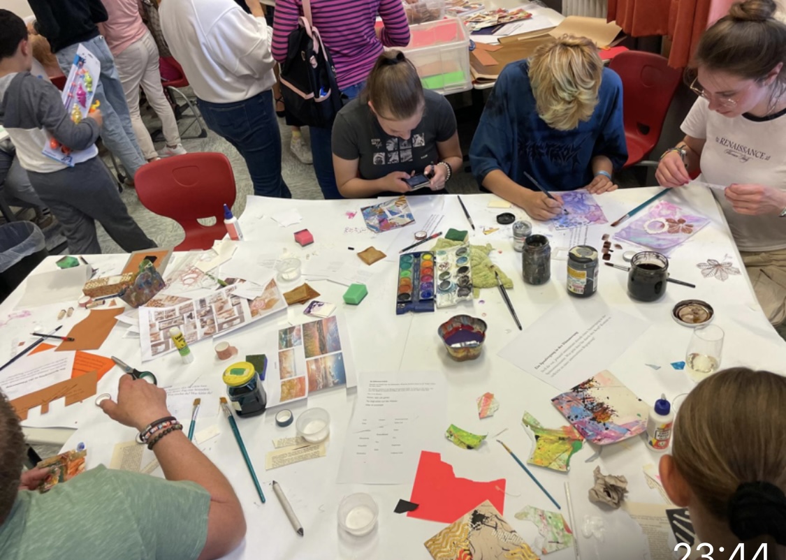 Für alle großen und kleinen Künstler*innen wurde ein Workshop zum offenen Atelier „across generations“ (Frau Himmerlich, Frau Dr. Okrassa) angeboten. Sowohl der Schnupperworkshop als auch die Galerie platze von 18-21 Uhr aus allen Nähten.