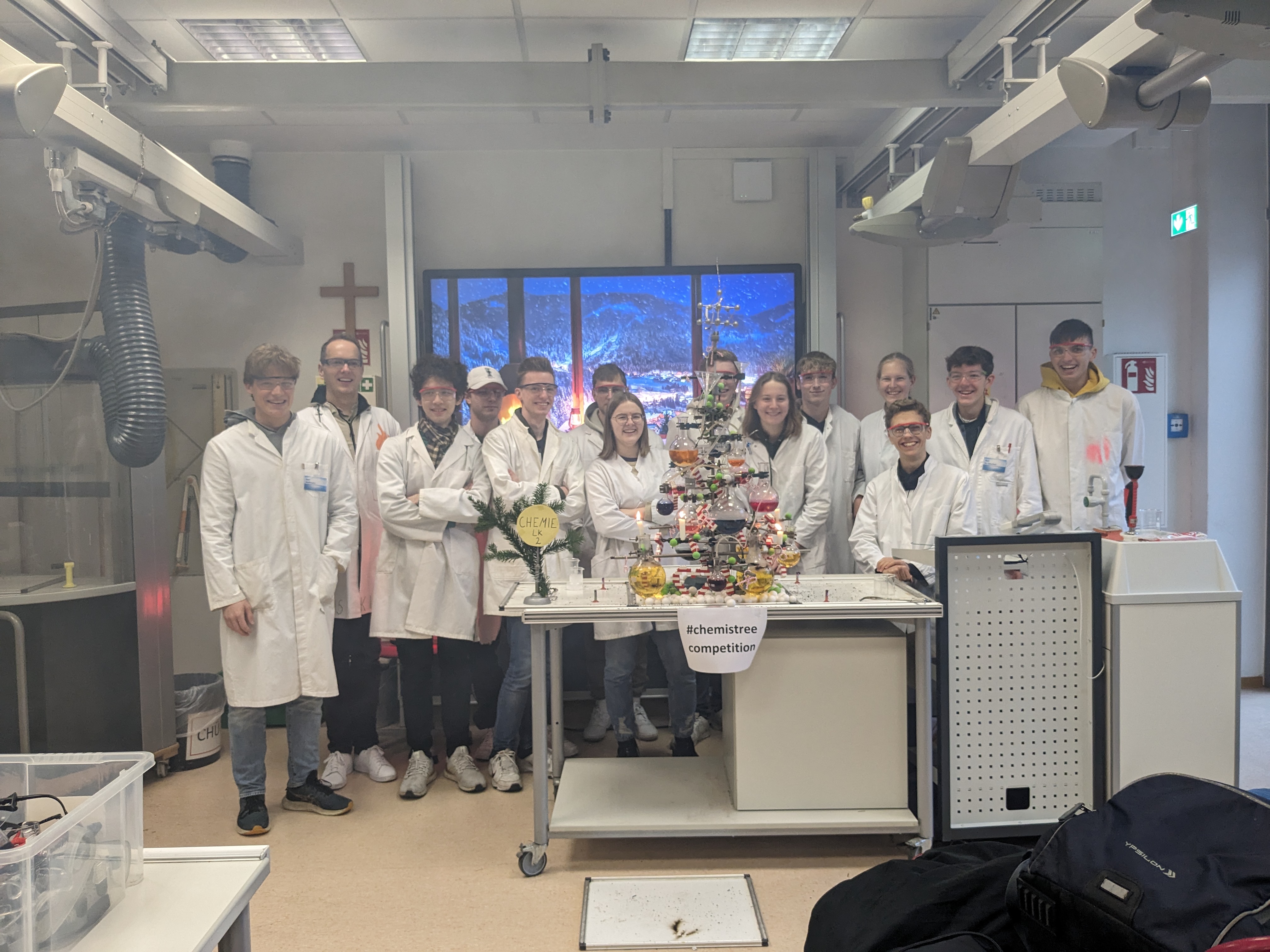 Wir, der Chemie Leistungskurs im Jahrgang 13 der Ursulaschule in Osnabrück, haben dieses Jahr einen besonderen Weihnachtsbaum kreiert. Sorgfältig geplant und gewissenhaft durchgeführt machte uns das Gestalten des Baumes in der Chemiestunde viel Freude.