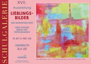 Wir haben sehr viele Schülerinnen und Schüler, die künstlerisch talentiert sind. Sie können sich bei uns in verschiedenen Projekten und Arbeitsgruppen austoben. So gibt es zum Beispiel die Arbeitsgruppe „Kleiner Kunstsalon“ für Kinder aus den 5. und 6. Klassen. In dieser AG malen, zeichnen, drucken, basteln und experimentieren wir mit unterschiedlichen Materialien. In unserer schönen Schulgalerie stellen wir regelmäßig Werke unserer Schülerinnen und Schüler aus: