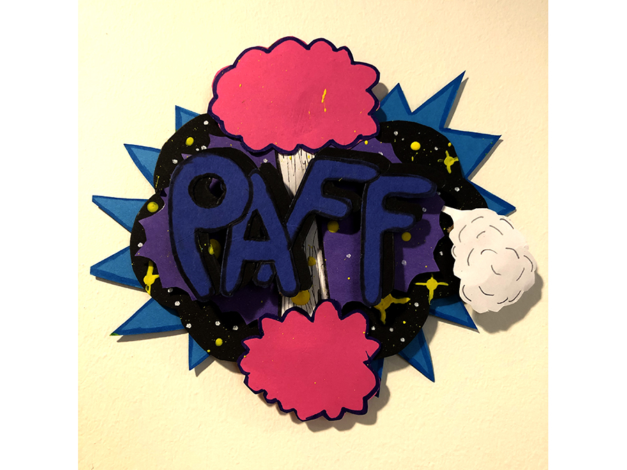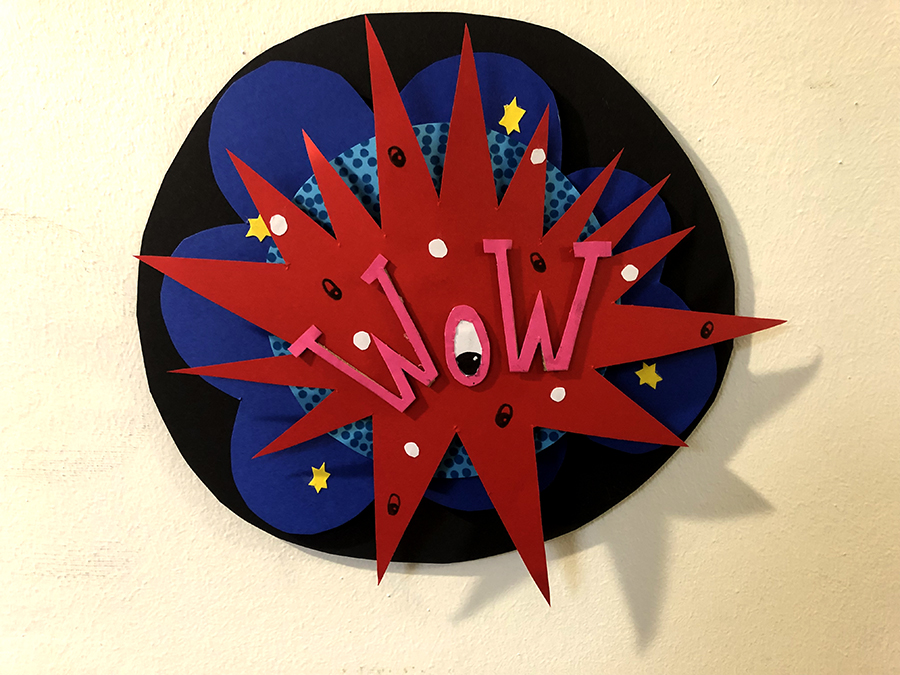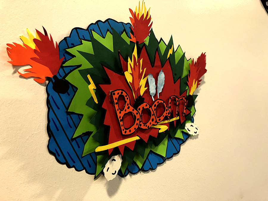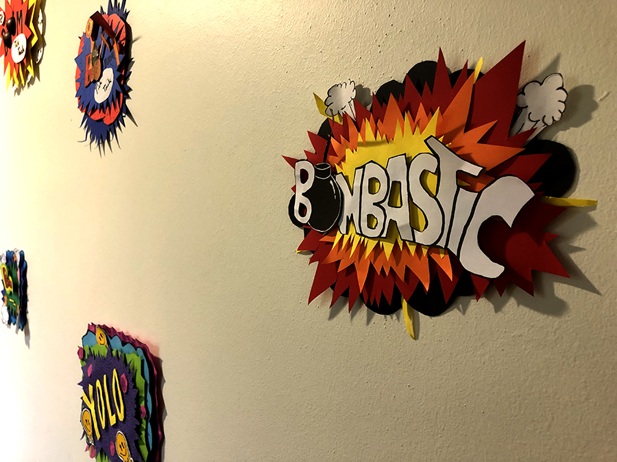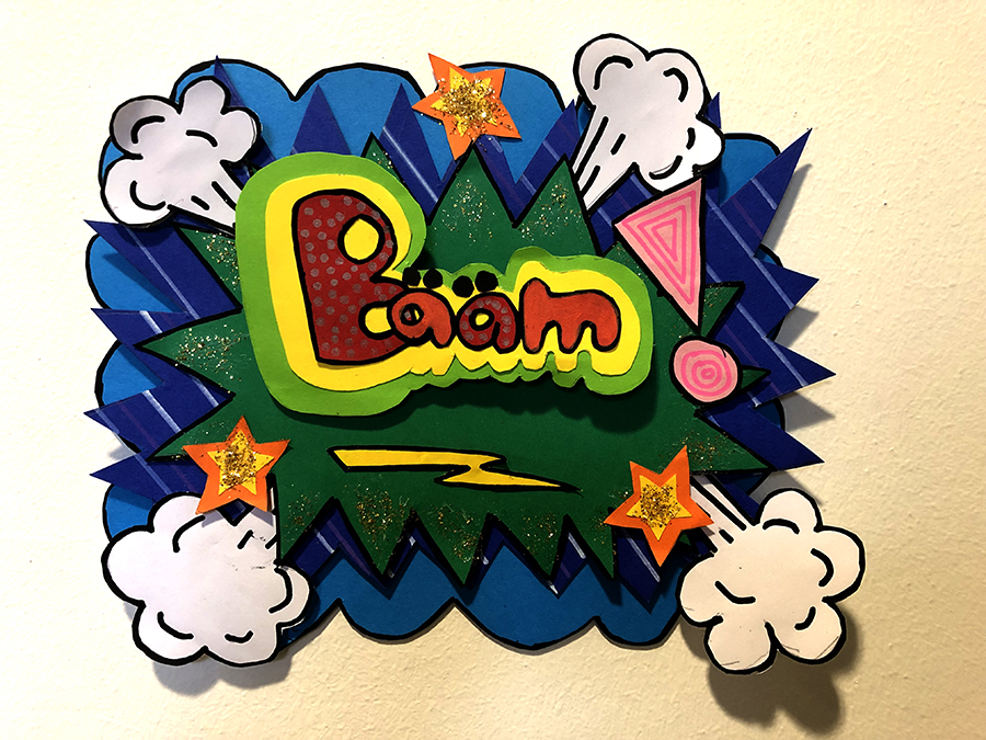 Deshalb gestaltete die Klasse 6D im Kunstunterricht mit ihrer Lehrerin Olivia Bongs bunte, künstlerisch umgesetzte Lautmalereien mit 3D-Effekt, die nun auf dem Flur des Lehrerzimmers in Haus 5 auf dem Gelände der Domschule bestaunt werden können.