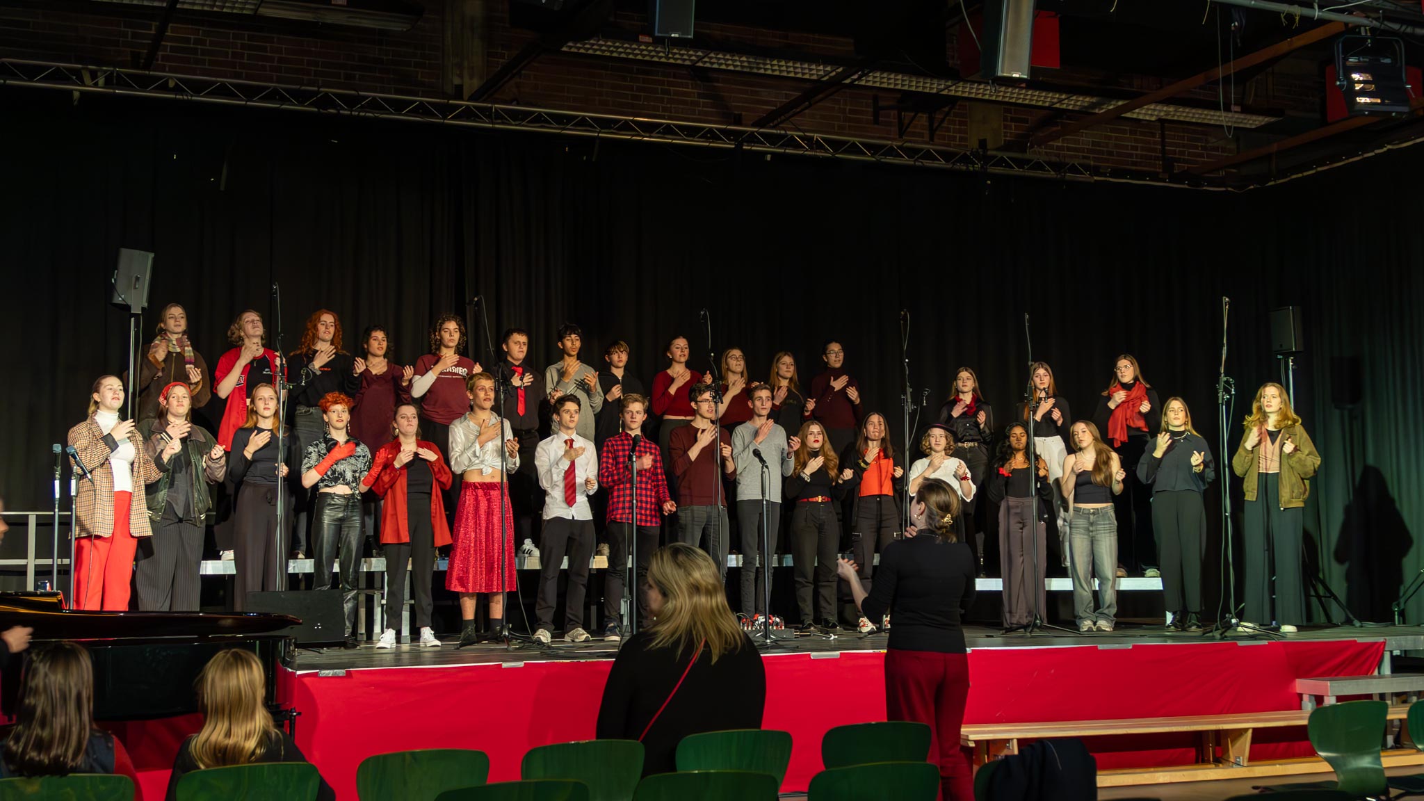 Am 24.01.24 machten wir uns erneut auf den Weg nach Köln zum zweiten Teil der VocCologne. Dazu brachen wir um 13 Uhr mit dem Bus auf und nach mehreren Staus und einem verschobenen Soundcheck schafften es endlich zum Humboldt-Gymnasium, wo wir das Konzert aufgrund unserer positiven Ausstrahlung eröffnen durften. Wir konnten uns außerdem erneut Stücke der anderen Chöre anhören und um 22 Uhr machten wir uns dann auf den Rückweg nach Osnabrück.