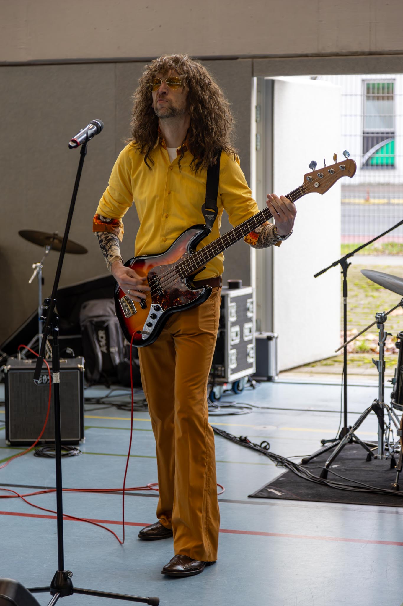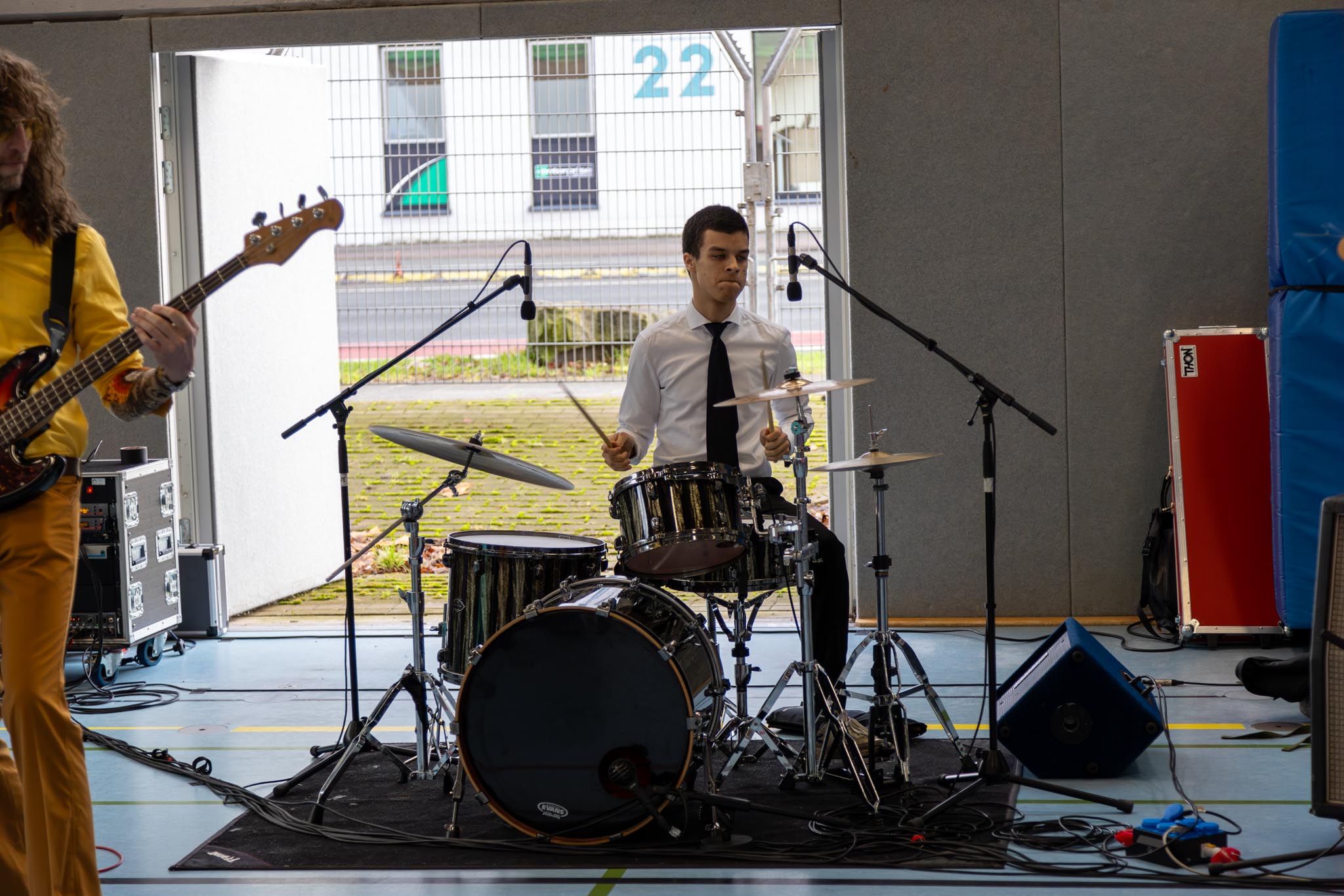 Mit zum Karneval passenden bunten Programm wurden die dritte und vierte Stunde gefüllt. Ein Schüler der siebten Klasse eröffnete die Show mit einem poppigen Klavierstück. Die Klasse 5a führte mit Frau Stern eine Choreografie zu "The Greatest Showman" auf, auch die Lehrerband wurde bejubelt. Zwischendurch brachte die Schulleiterin Frau Boßmeyer-Hoffmann mit einer Büttenrede die Schülerinnen und Schüler zum Lachen.