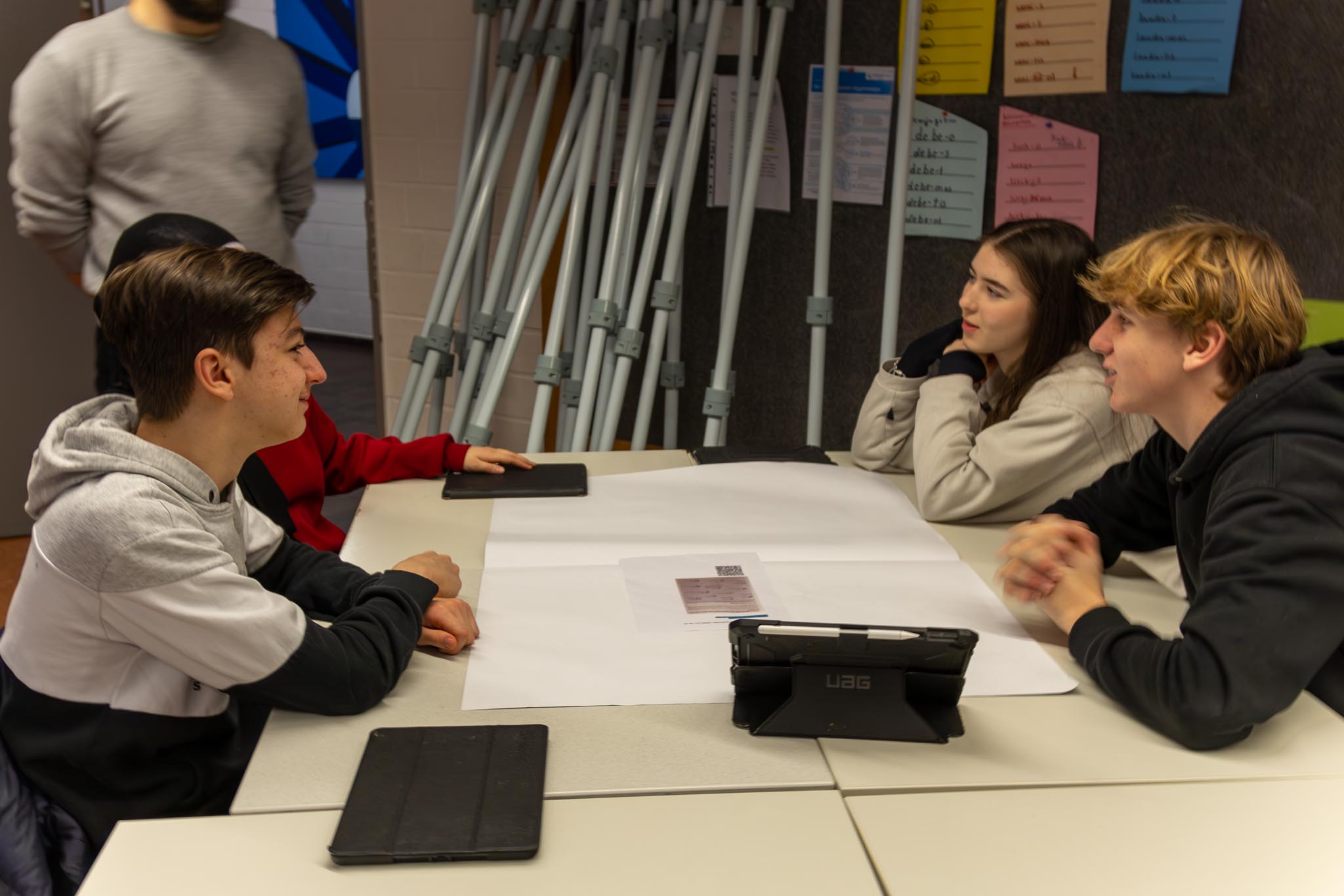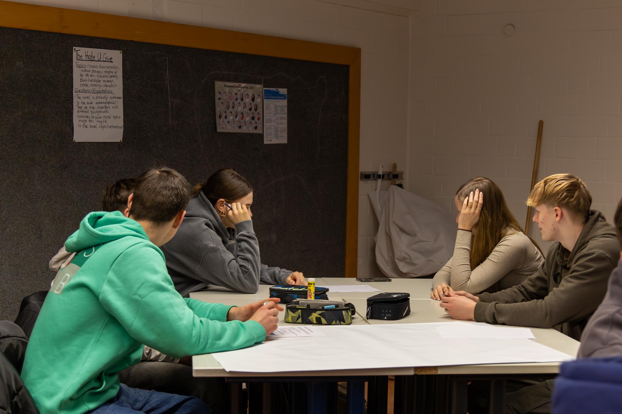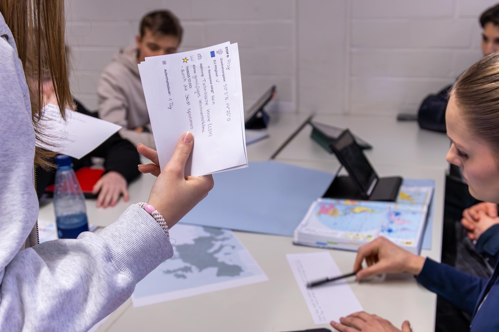Die Schülerinnen und Schüler näherten sich dem Thema in klassengemischten Gruppen aus verschiedenen Richtungen und wurden kreativ, indem sie beispielsweise die Perspektive von Geflüchteten in einer Theaterszene einnahmen und ein Gespräch während ihrer Flucht bzw. bei ihrer Ankunft in Europa erstellten oder fiktiv Erasmus von Rotterdam interviewten. Des Weiteren plan-ten sie eine Interrailtour durch Europa, informierten sich und diskutierten verschiedene Problematiken und Aufgaben der EU, welche im Laufe des zweiten Halbjahres im Fach Politik-Wirtschaft wieder aufgegriffen und vertieft werden.